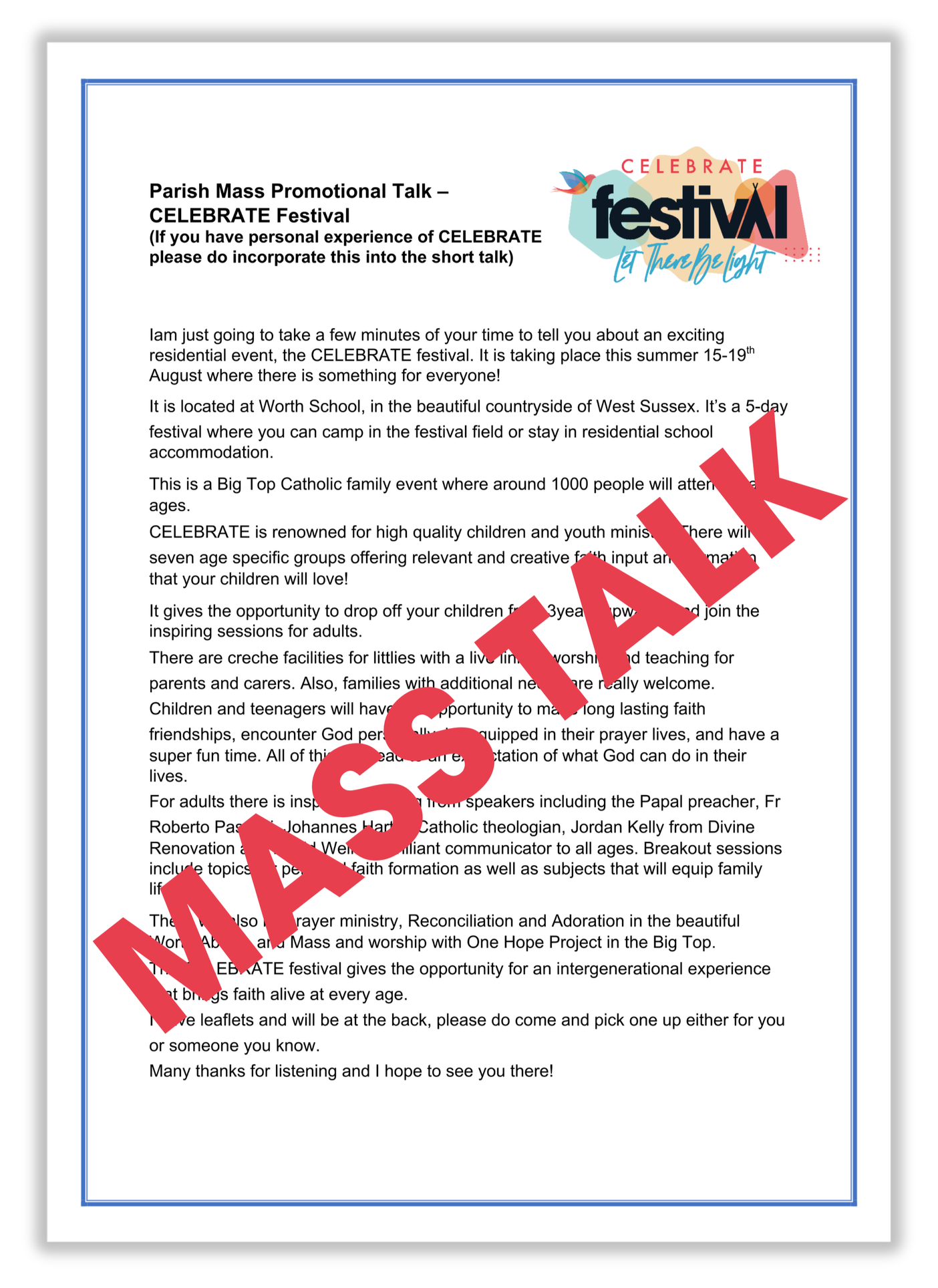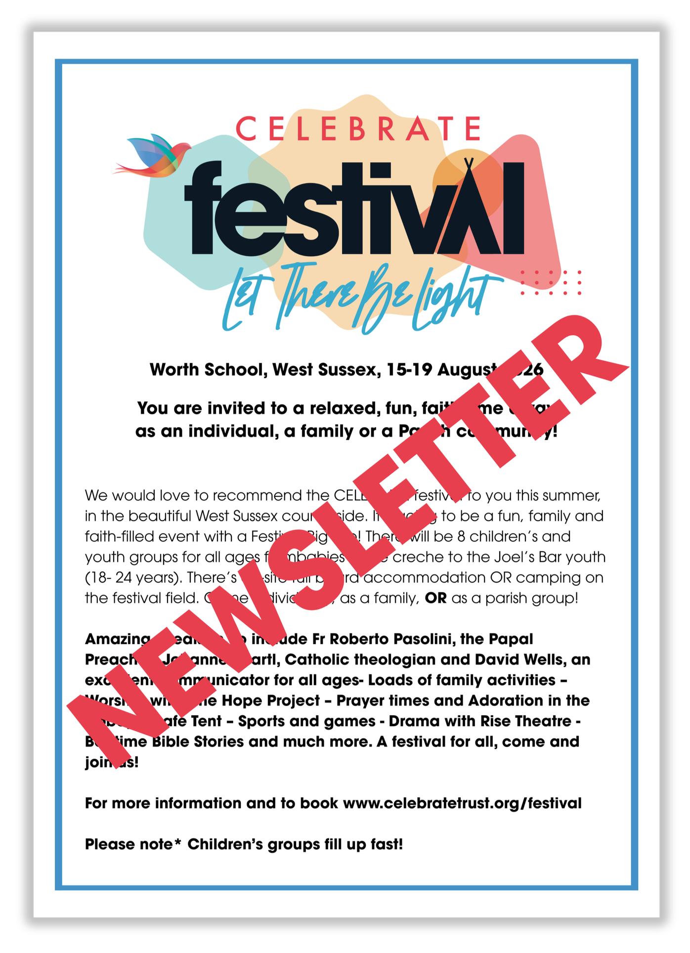 We are so excited about this festival, and we want the invitation go far and wide. Please spread the word about the CELEBRATE festival by utilising the promotional materials below.